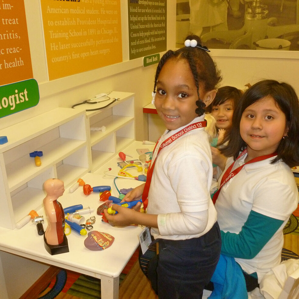 The Bronzeville Children’s Museum exhibits and programs are specially designed for children ages 4–9. At this stage, children are ready to actively participate, explore, and learn through hands-on activities.
